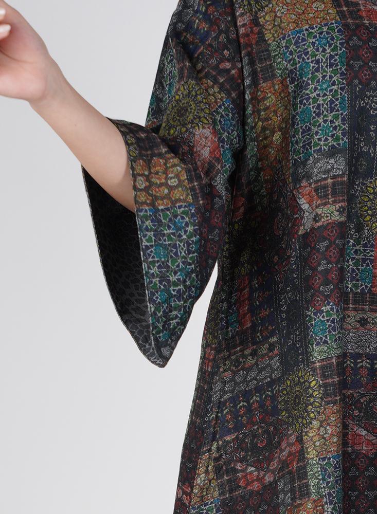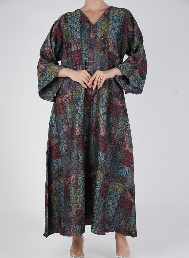 جلابية وجهين كم طويل من أتارا، بتصميم ذكي يُلبس على الوجهين وخامة حرير ديجيتال ناعمة، تمنحك أناقة متجددة كل يوم.