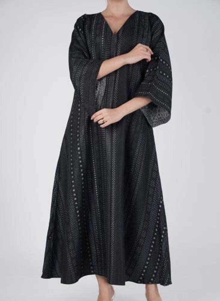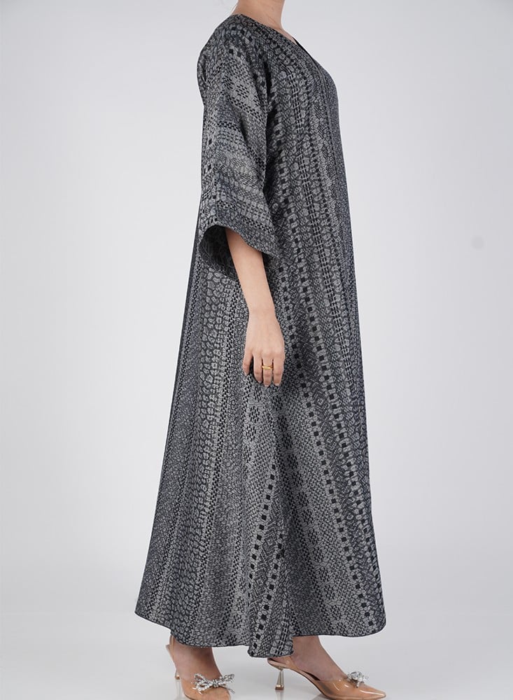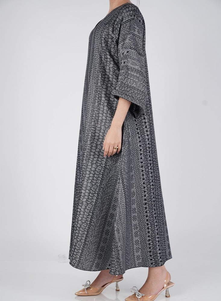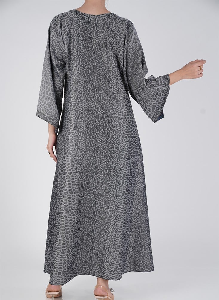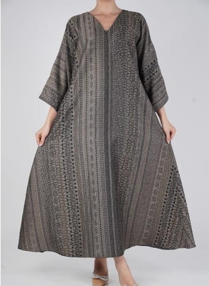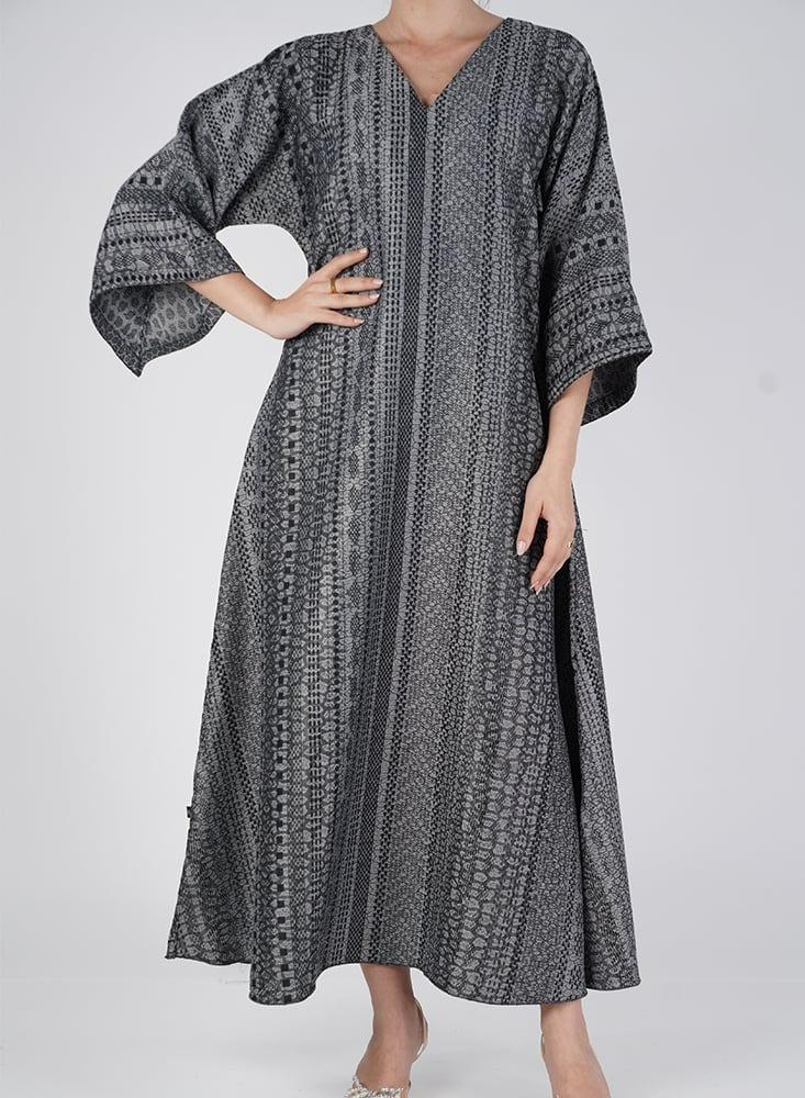جلابية وجهين بطباعة حريرية أنيقة تمنحك إطلالتين في قطعة واحدة بتصميم عملي يواكب ذوق المرأة العصرية.