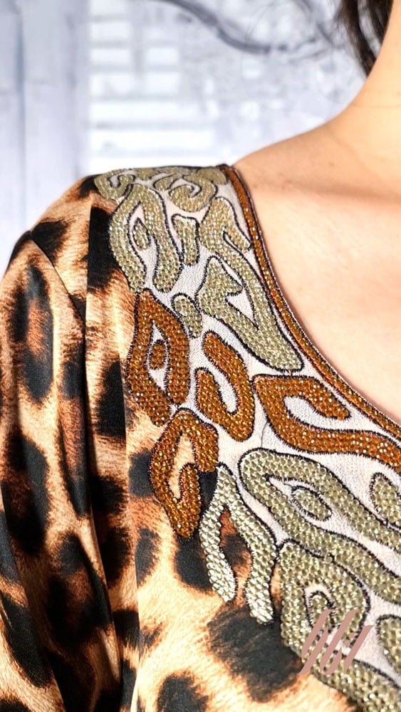 تألقي بإطلالة جريئة وفاخرة مع مخوار حرير تايجر المصمم بإتقان لتناسب جميع مناسباتك. يتميز بنقوش "تايجر" المذهلة التي تضيف لمسة فريدة من الأناقة. مصنوع من مزيج حريري عالي الجودة يجمع بين النعومة والراحة، إضافة إلى تطريزات جميلة تضفي مزيدًا من الفخامة على مظهرك.