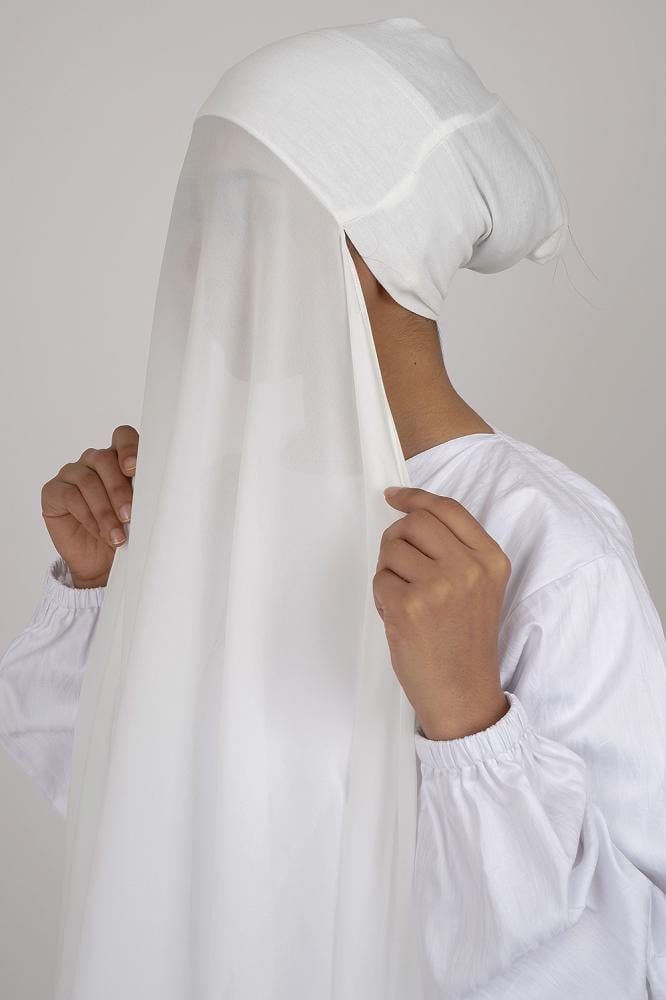 🌸 خمار العمرة بغطوة متصلة مع طقطق لثبات أكبر .