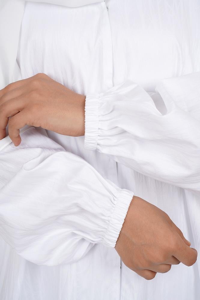يتكوّن الطقم من عباية واسعة بتصميم أنيق وجيوب مخفية مع قميص وبنطال برباط خصر من نفس القماش، بالإضافة إلى طرحة وبندانة وخمار سادة يغطي الرأس والوجه.