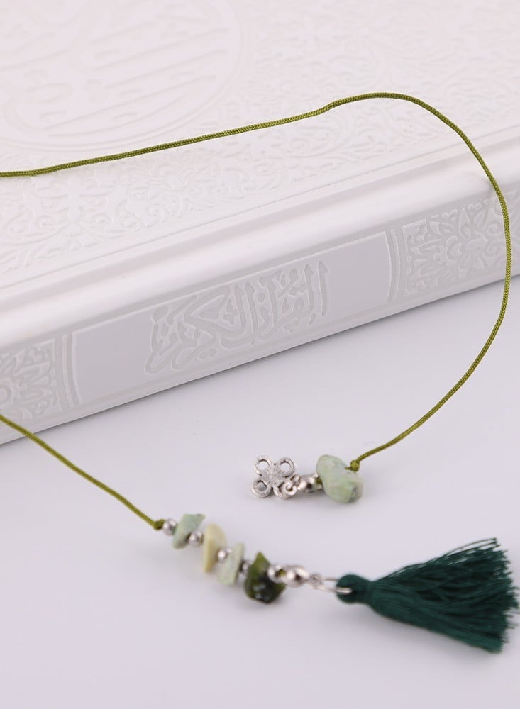 فواصل القرآن المصنوعة من الخيط والحجر هي قطع صغيرة تُستخدم لتحديد المواضع في النص القرآني أثناء القراءة أو التلاوة. تتكون عادة من خيوط ملونة أو حجر صغير يوضع بين صفحات المصحف لتحديد المواضع المراد العودة إليها لاحقًا. تلعب هذه الفواصل دورًا مهمًا في تنظيم وتنسيق قراءة القرآن وتسهيل العودة إلى الصفحات المحددة بسرعة وسهولة.