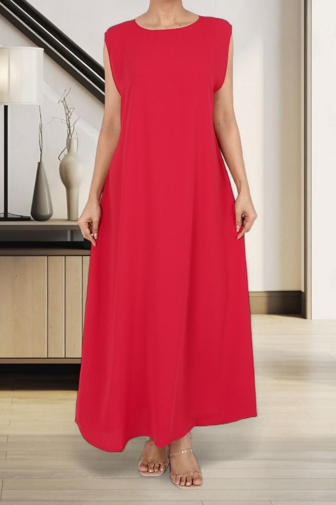 🌸 ياقة حلق دائرية أنيقة: تضفي لمسة جمال بسيطة وراقية للفستان.