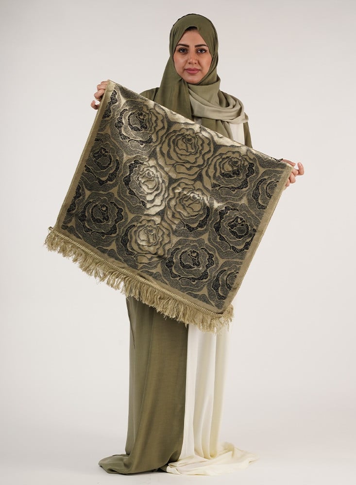 2-سجادة صلاة حرير عالية الجودة باللون الزيتي