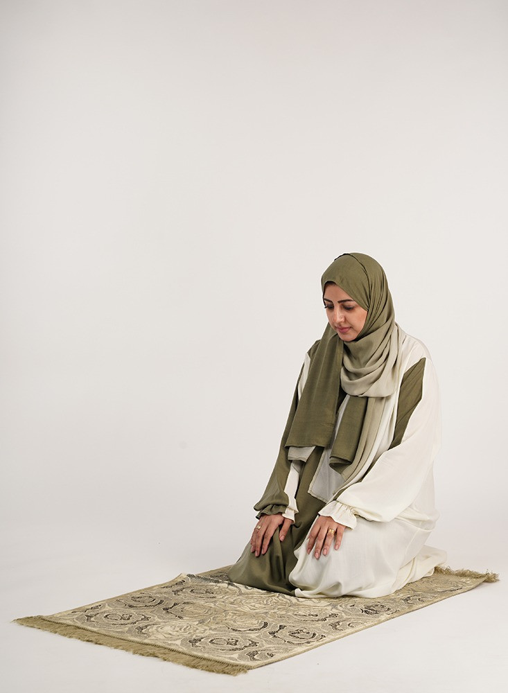 1- شرشف صلاة رايون 100% بلونين متناسقين زيتي وسكري