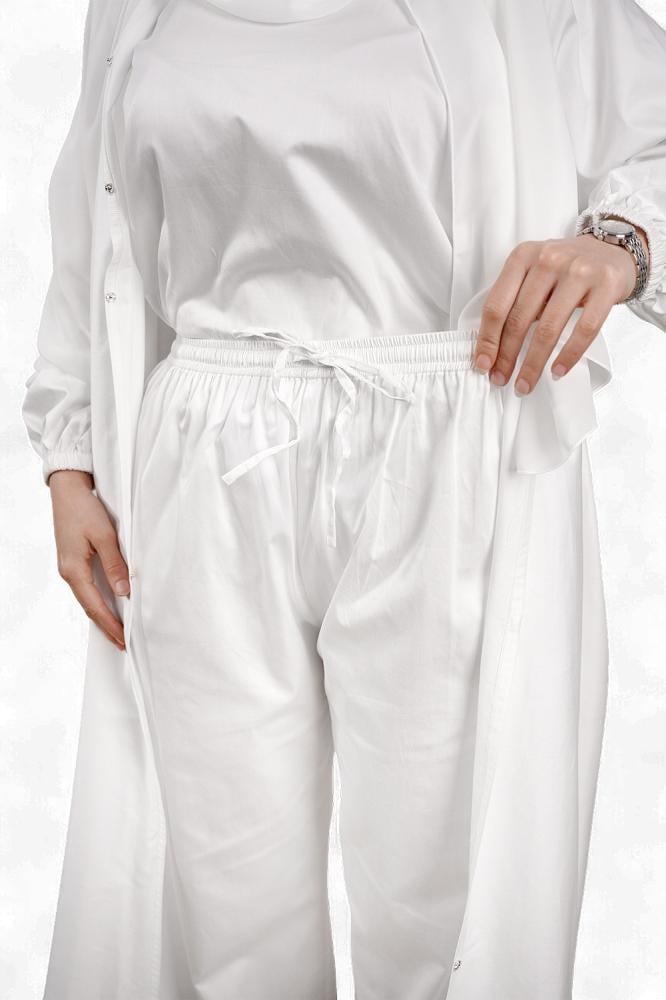 🌸 بنطلون بخصر مطاطي: يمنحك مرونة وراحة فائقة أثناء المشي وأداء مختلف المناسك.