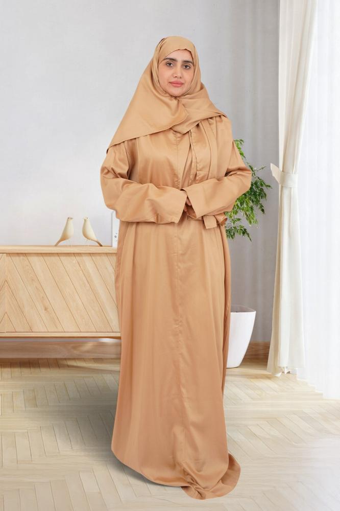 شرشف صلاة كنوز قطن حرير 100% ليوم الأم، تصميم عملي مع طرحة متصلة وسحاب مخفي، مزين بقيطان فاخر، ناعم وبارد على البشرة، خياطة متقنة وتغليف أنيق، صناعة سعودية بجودة عالية.