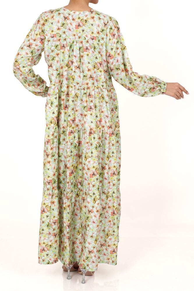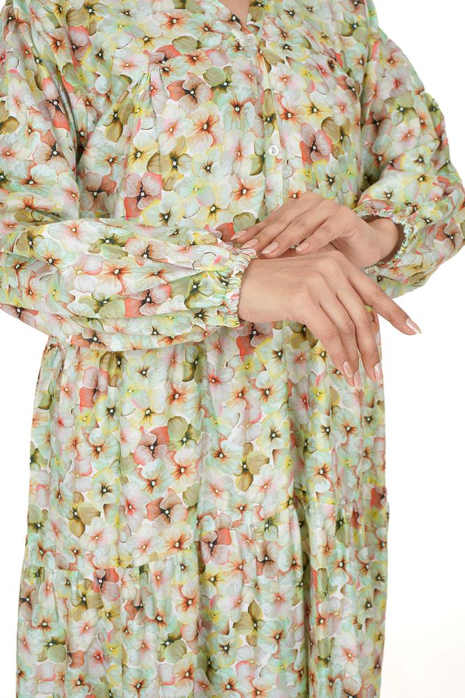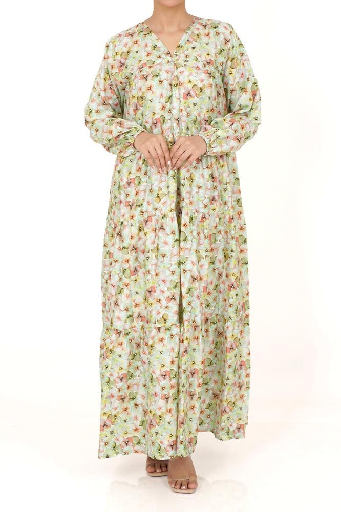 نقشة الورود الهادئة تضفي طابعاً أنثوياً مفعماً بالجمال لتكوني متألقة في المناسبات العائلية و الإطلالات اليومية.