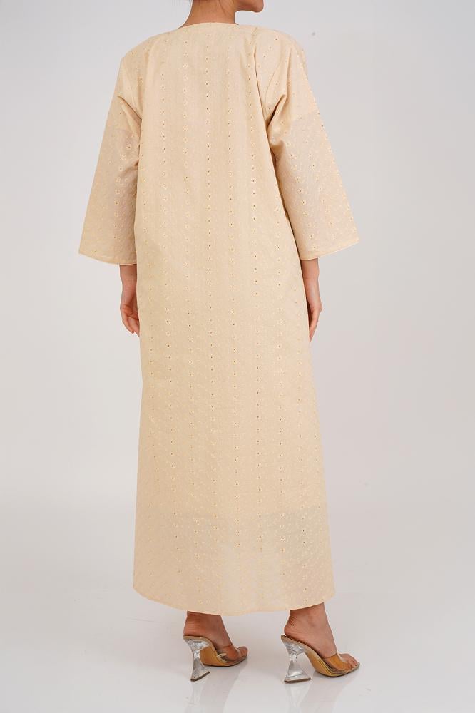 جلابية قطن روكامة من أتارا بوتيك تمثل مزيجًا فريدًا من الفخامة الناعمة والراحة اليومية، صُممت لتمنحك أناقة خفيفة في كل موسم.